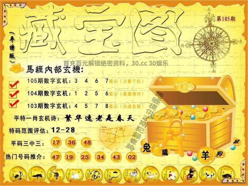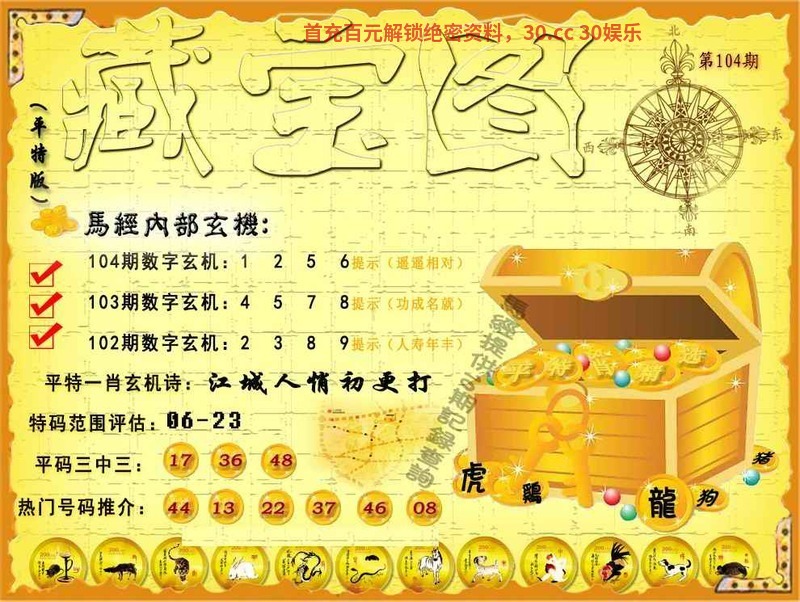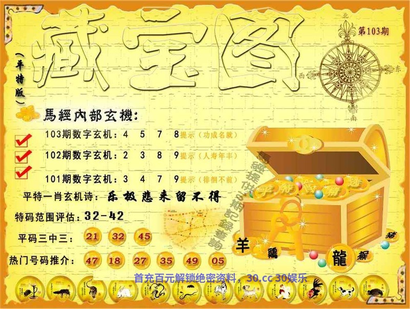 108期:白姐特段/简单发财诗/马会欲钱料/七娘一句中/开藏特图料